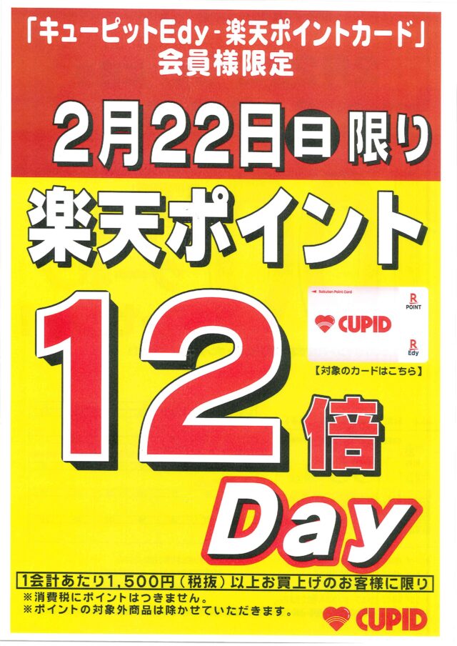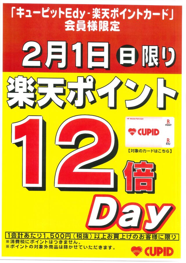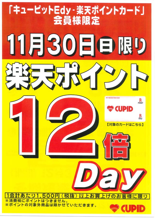 キューピットEdy-楽天ポイント 12倍Day開催します。