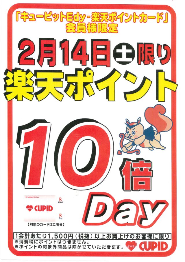 キューピットEdy-楽天ポイント 15倍Day開催します。
