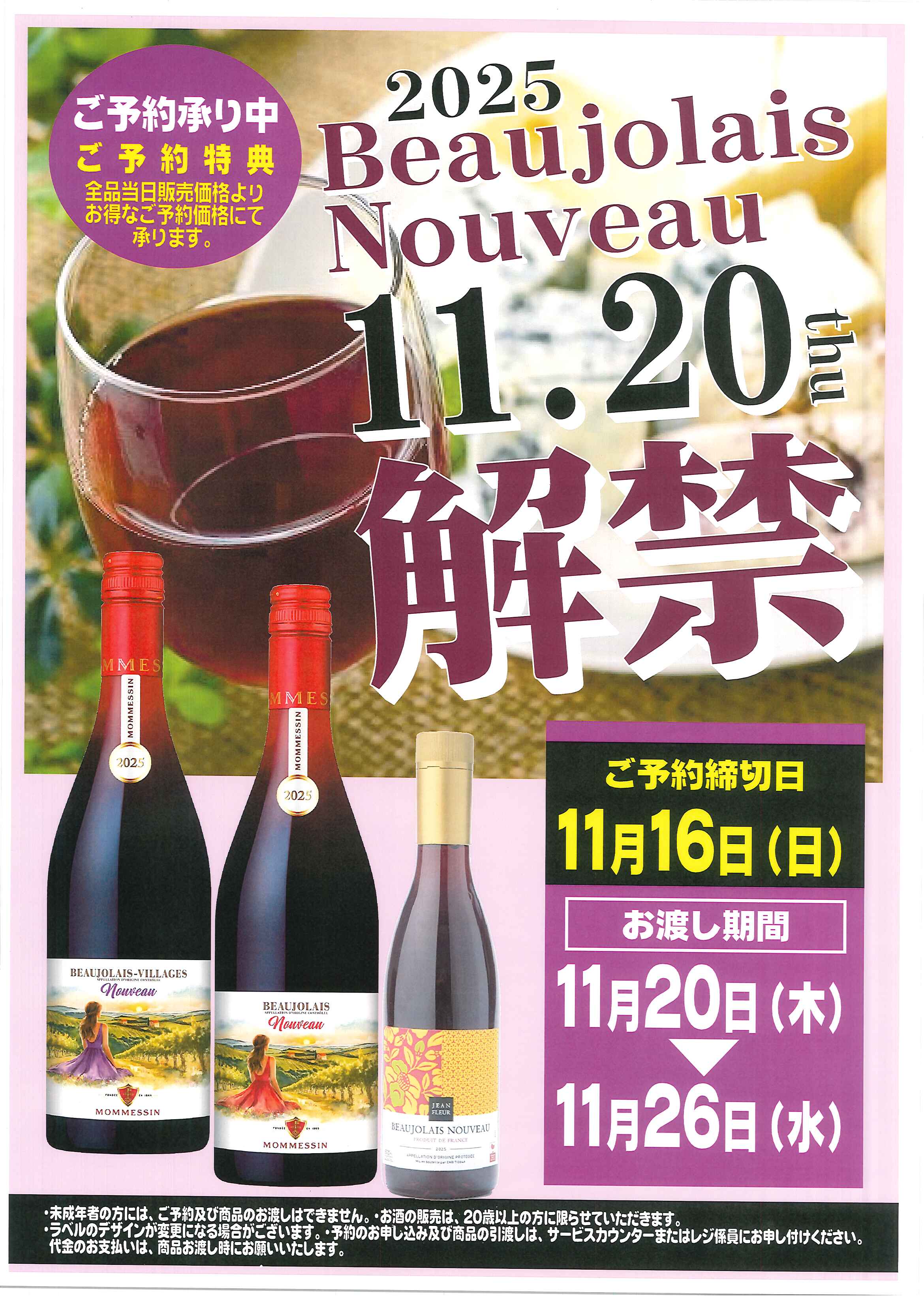 ボジョレー・ヌーボーご予約承り中